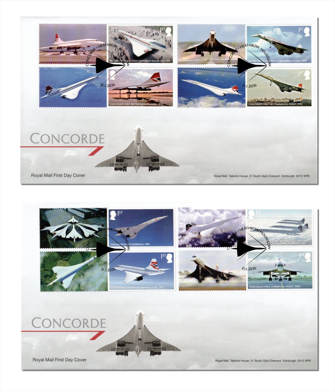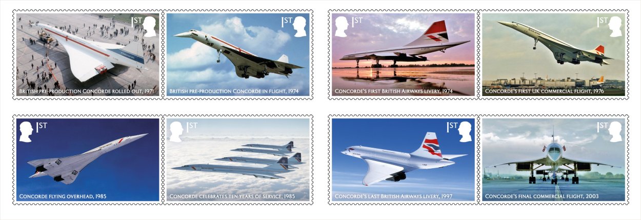 new stamp designs rom the Concorde issue alongside labels with additional