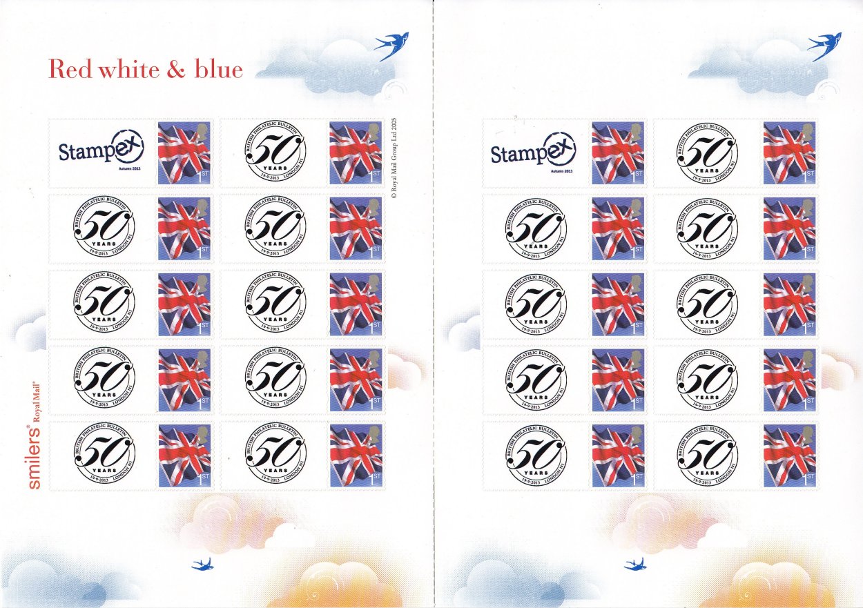 18-21 September 2013. Royal Mail made available personalised stamp sheets of 10 labels/stamps